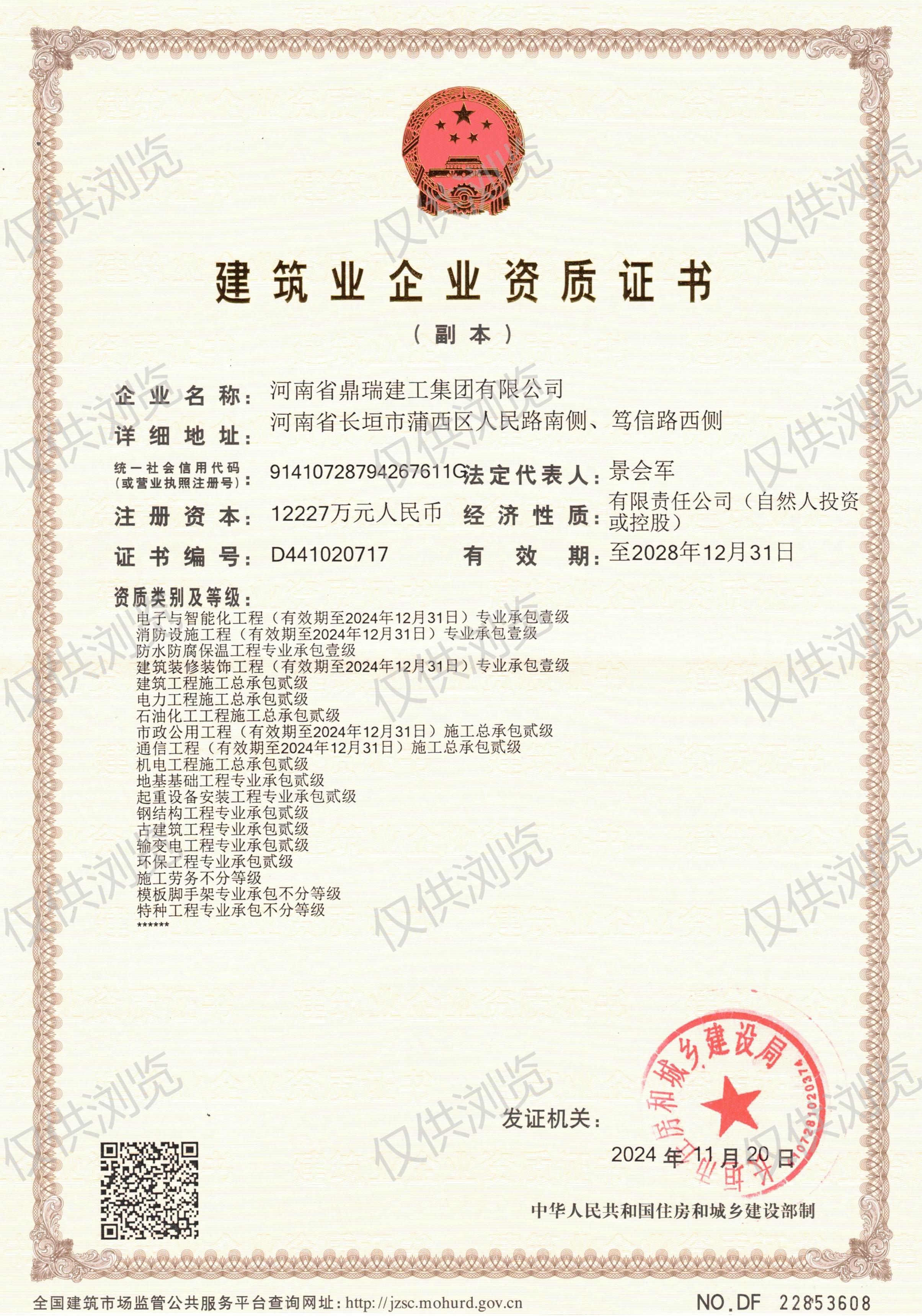 建筑業(yè)企業(yè)資質證書